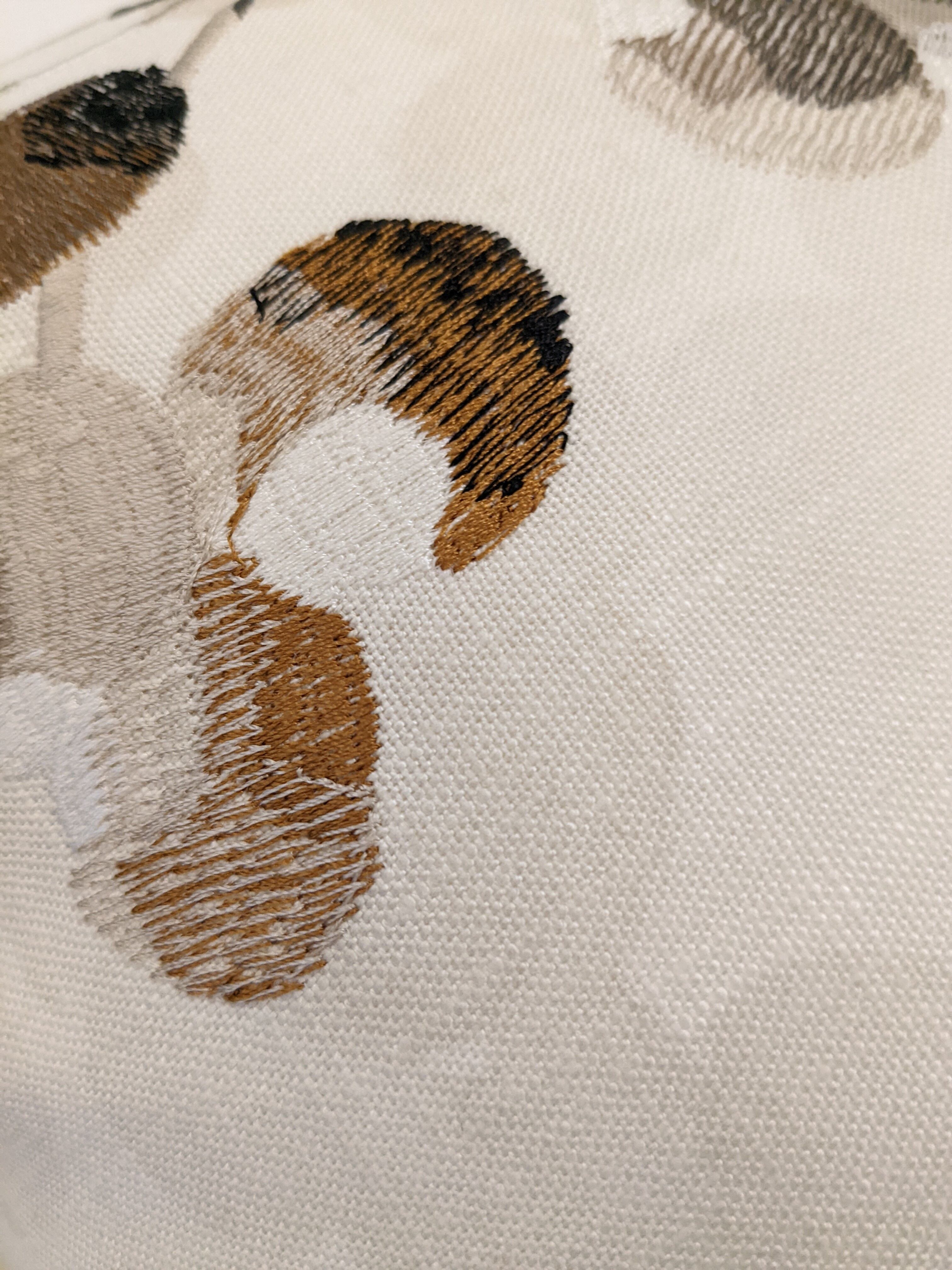 イギリスのブランド「カサマンス」の生地を使用。繊細な刺繍がとても美しく、四季を問わず使える落ち着いた色遣いも魅力的です。