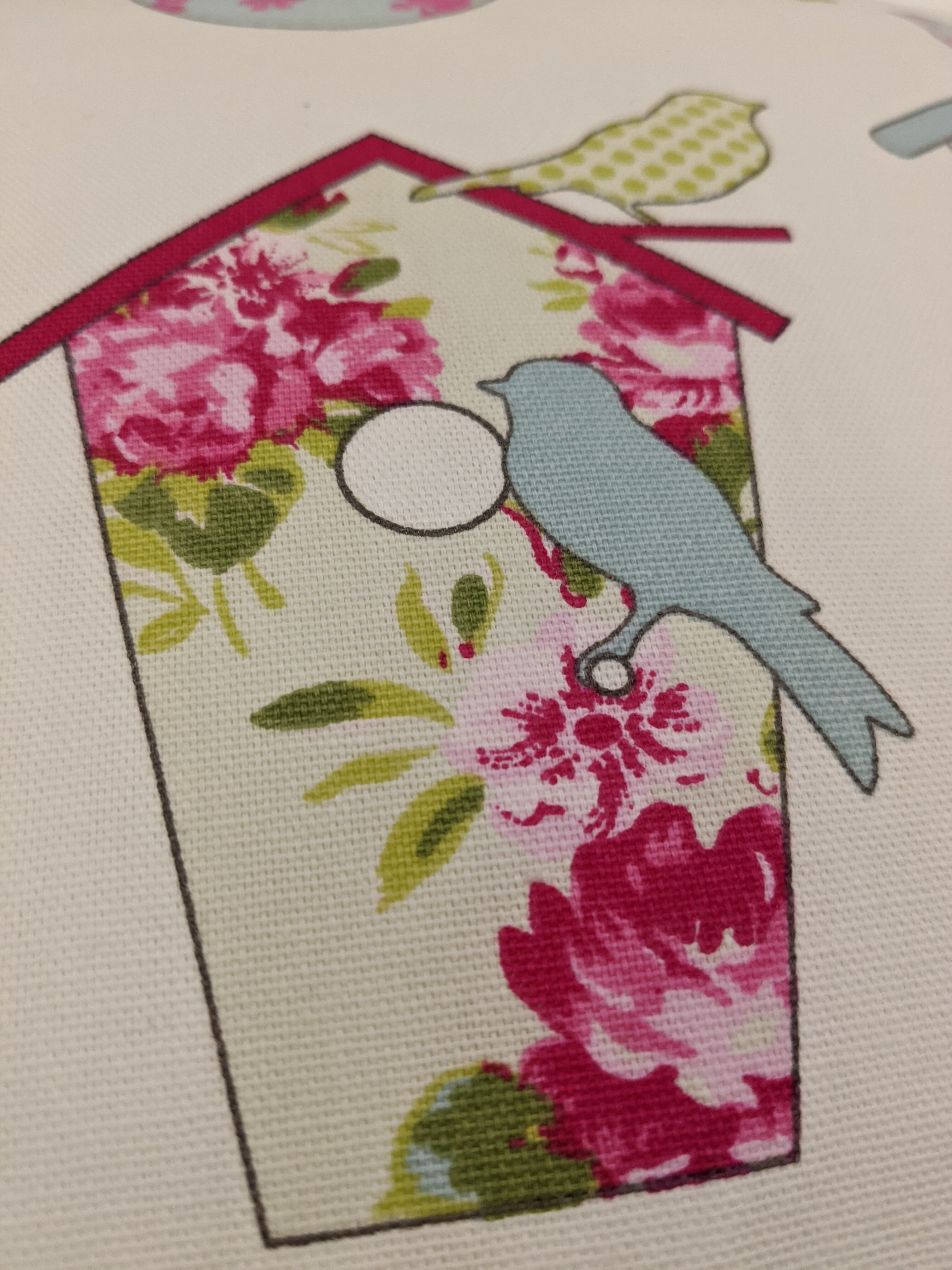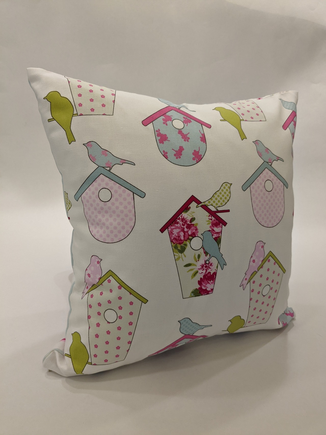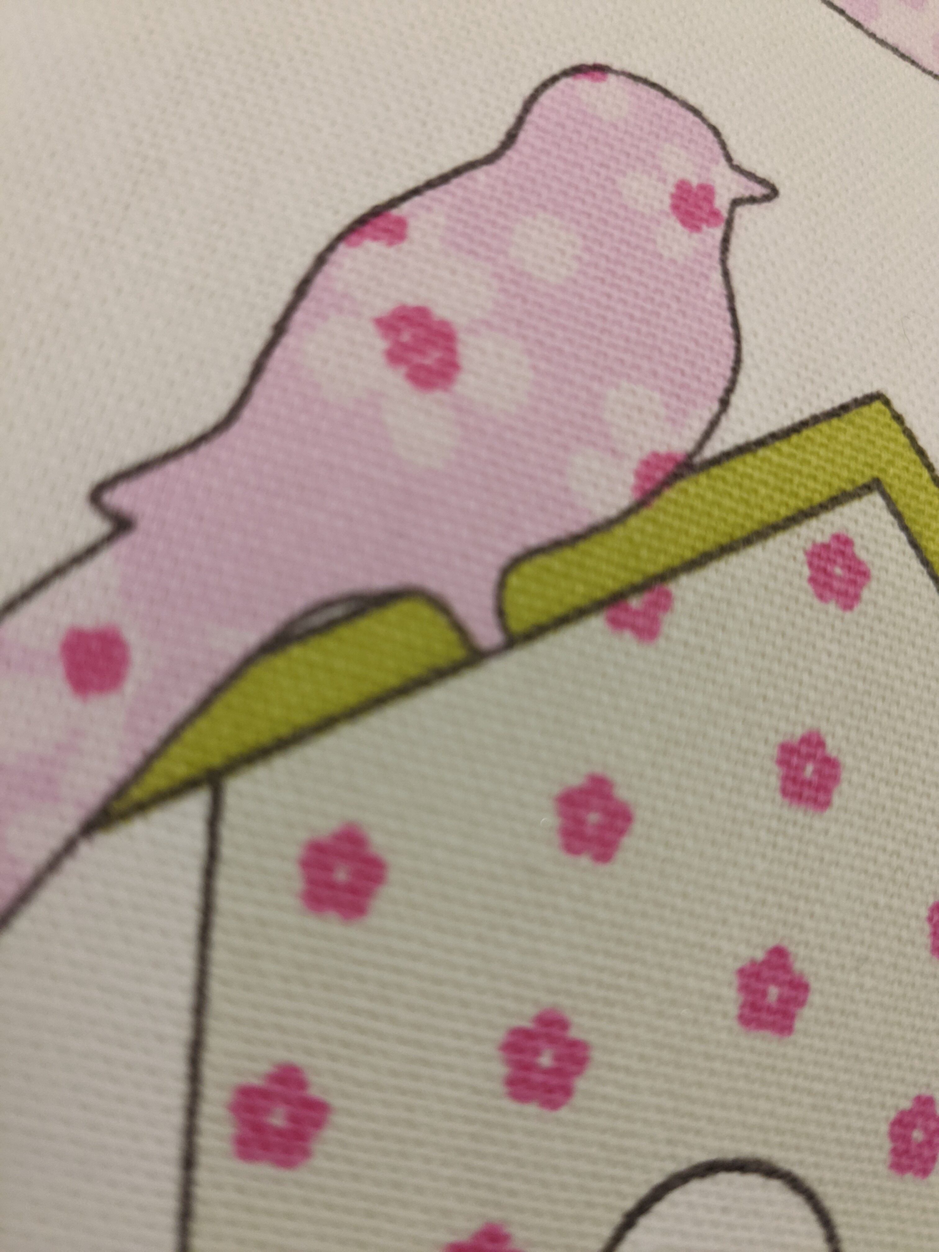 自社オリジナルの生地です。パステルカラーを使用した小鳥と花柄が可愛らしい印象の一点。カーテンやベッドリネンと合わせたコーディネートもおすすめです。