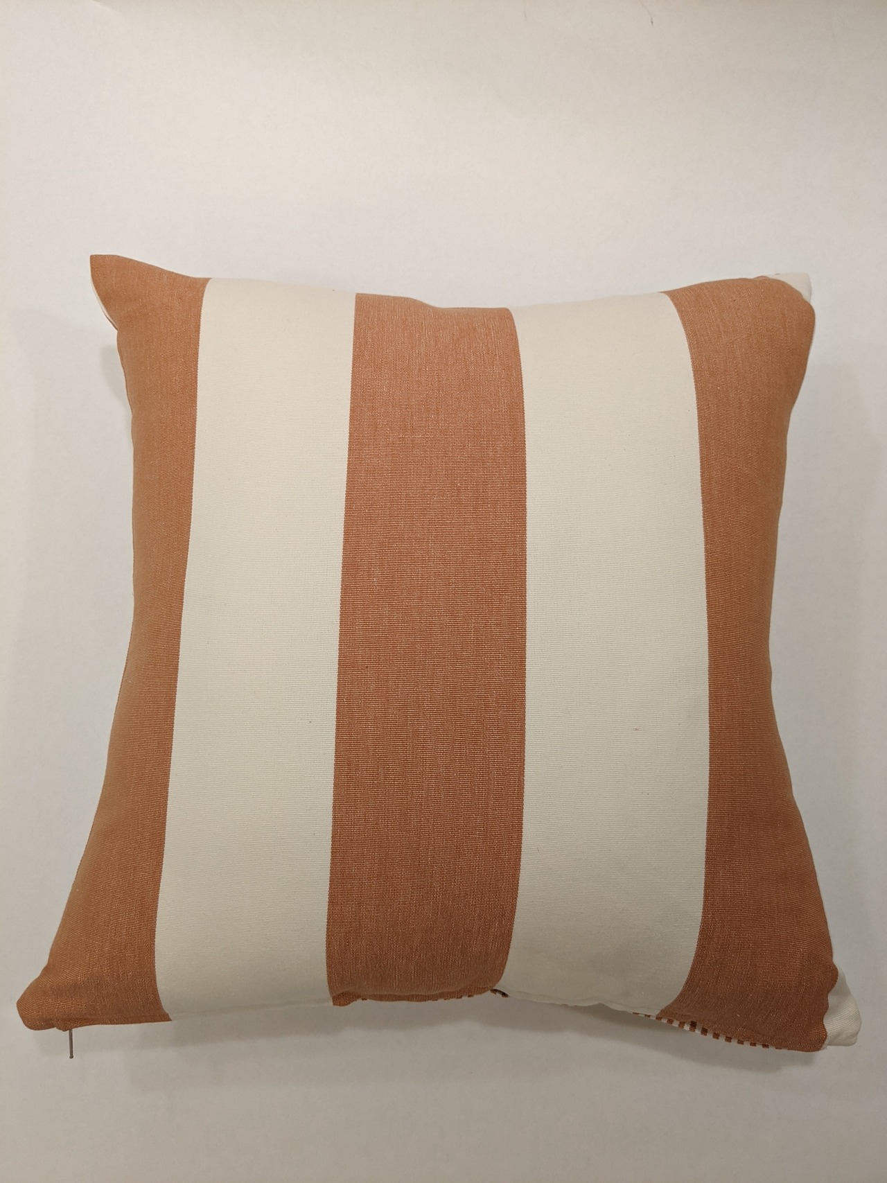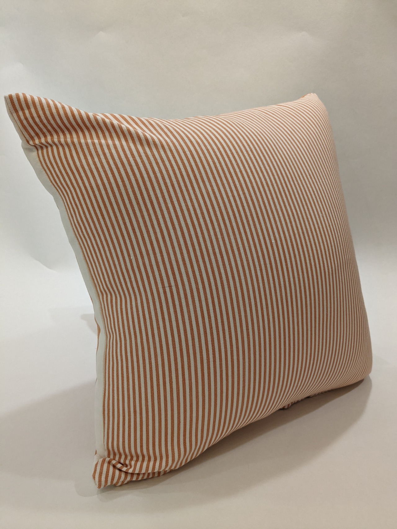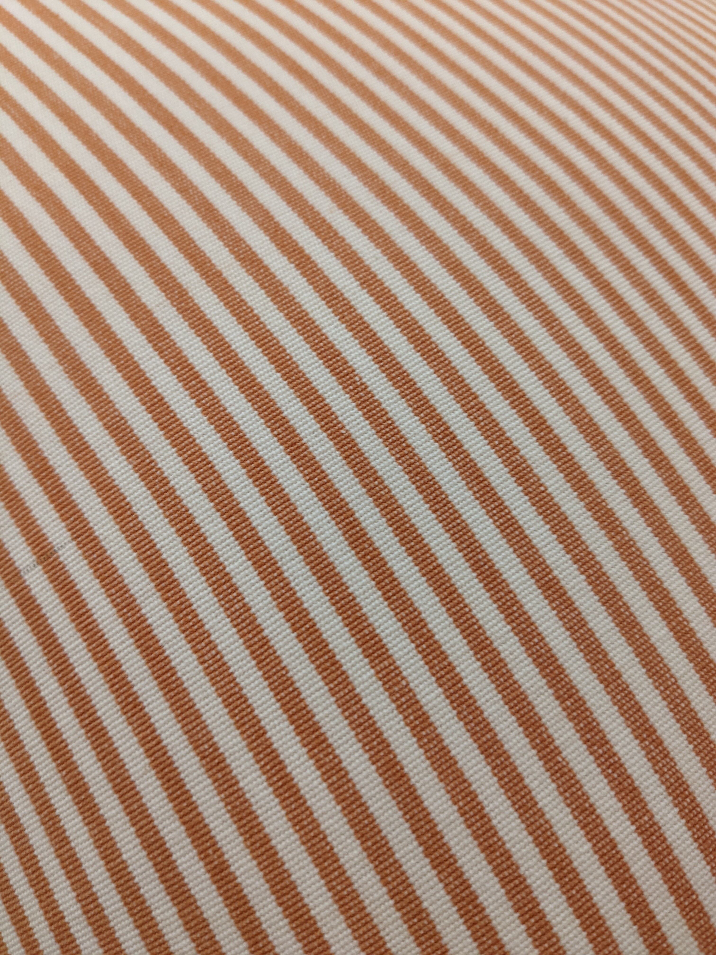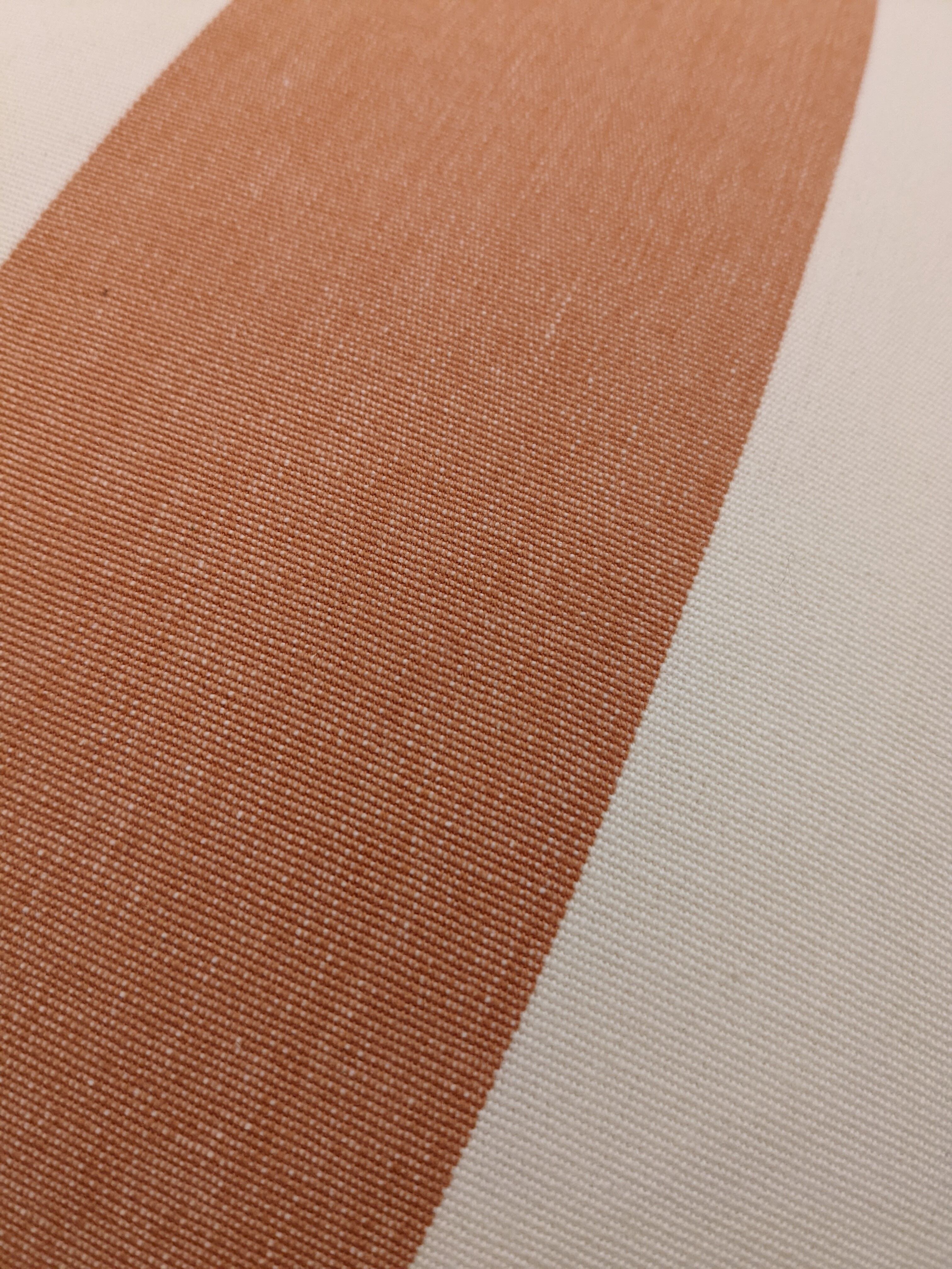 太さの異なるストライプを表と裏に使用しました。シンプルなデザインと控えめなトーンの色遣いのためインテリアとして合わせやすい一点です。