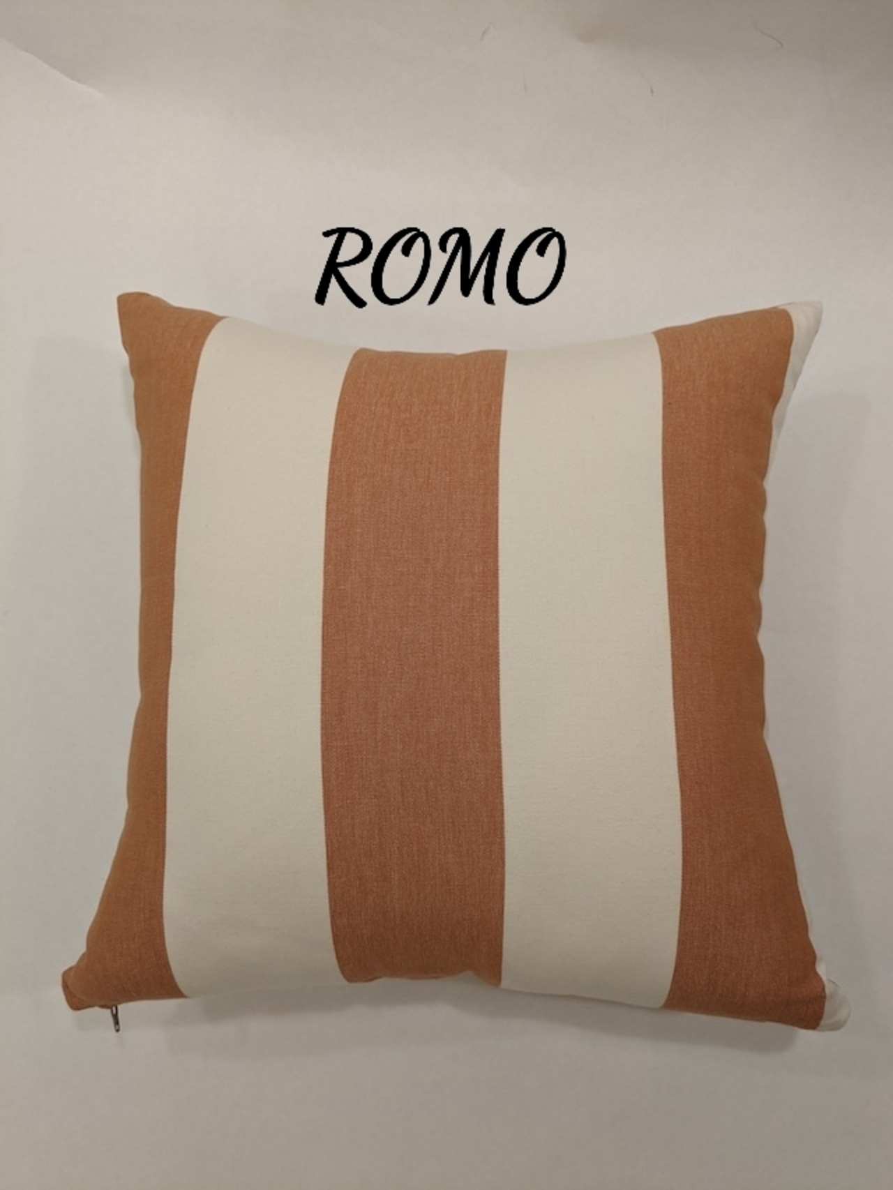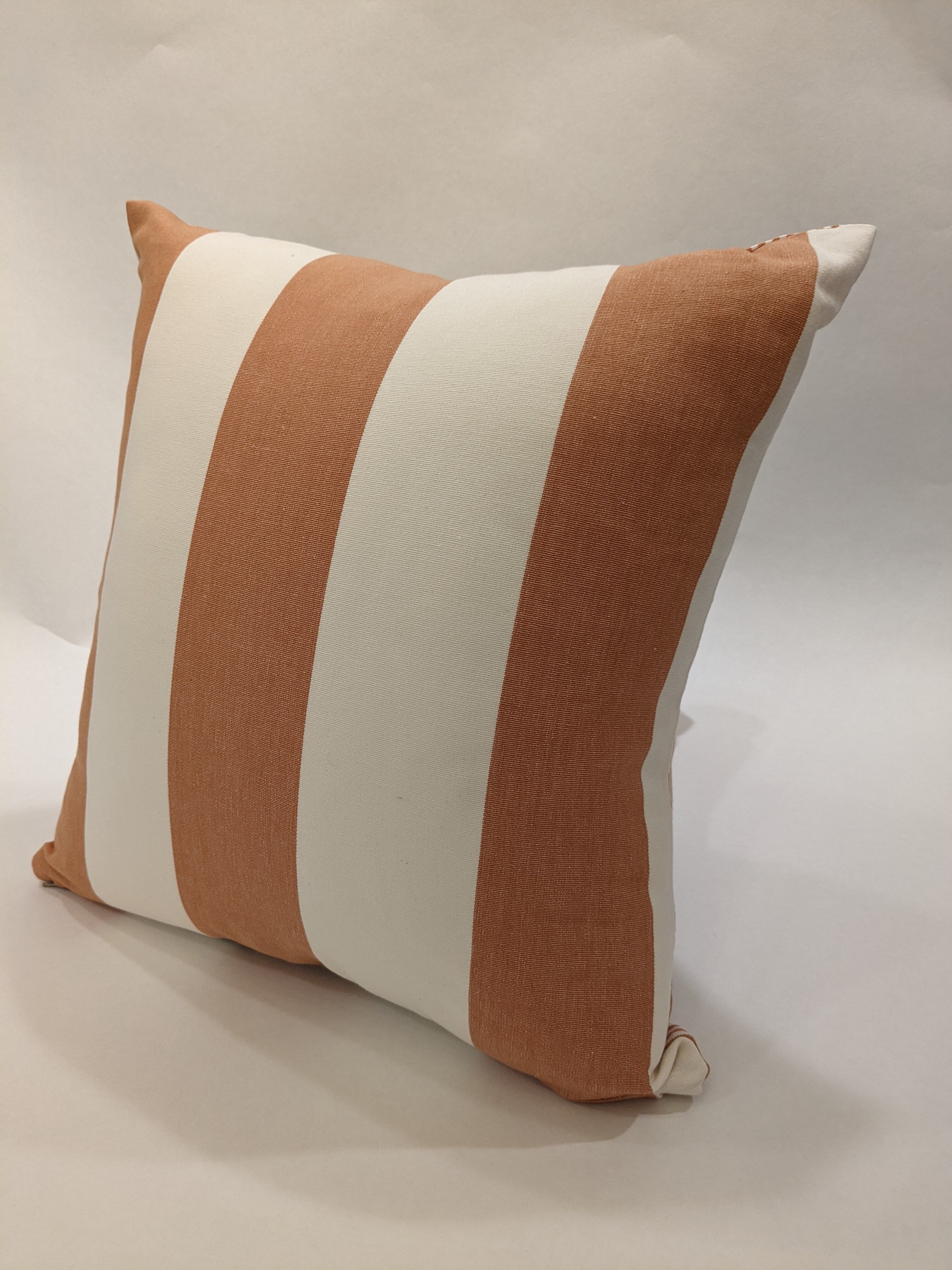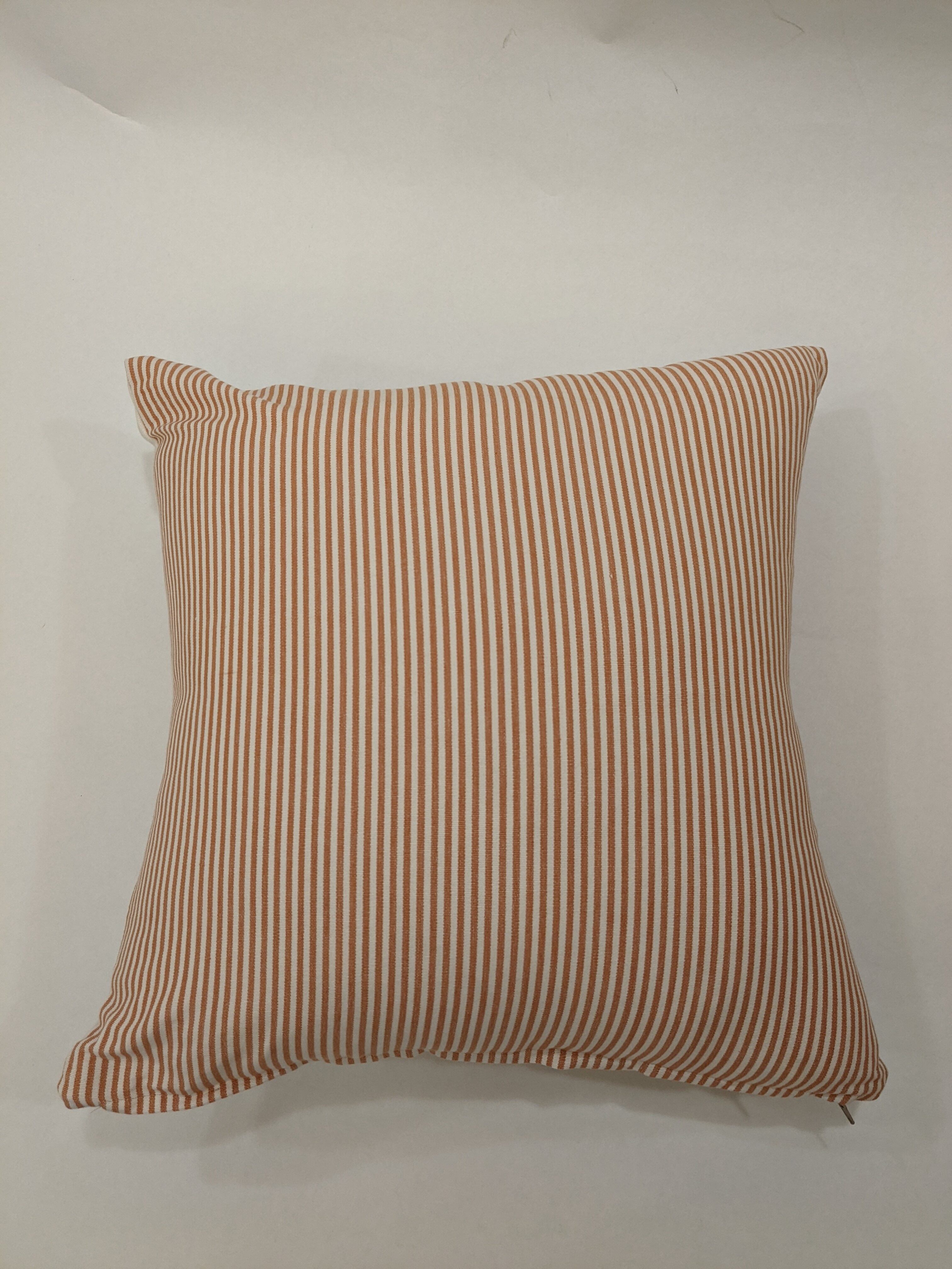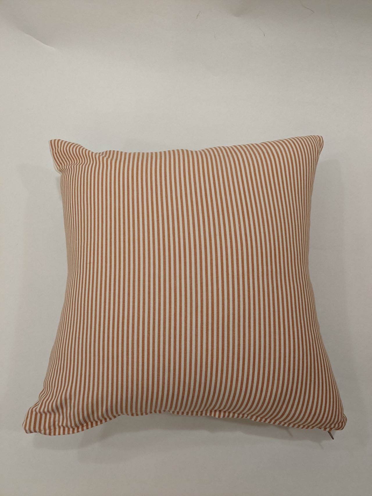 太さの異なるストライプを表と裏に使用しました。シンプルなデザインと控えめなトーンの色遣いのためインテリアとして合わせやすい一点です。