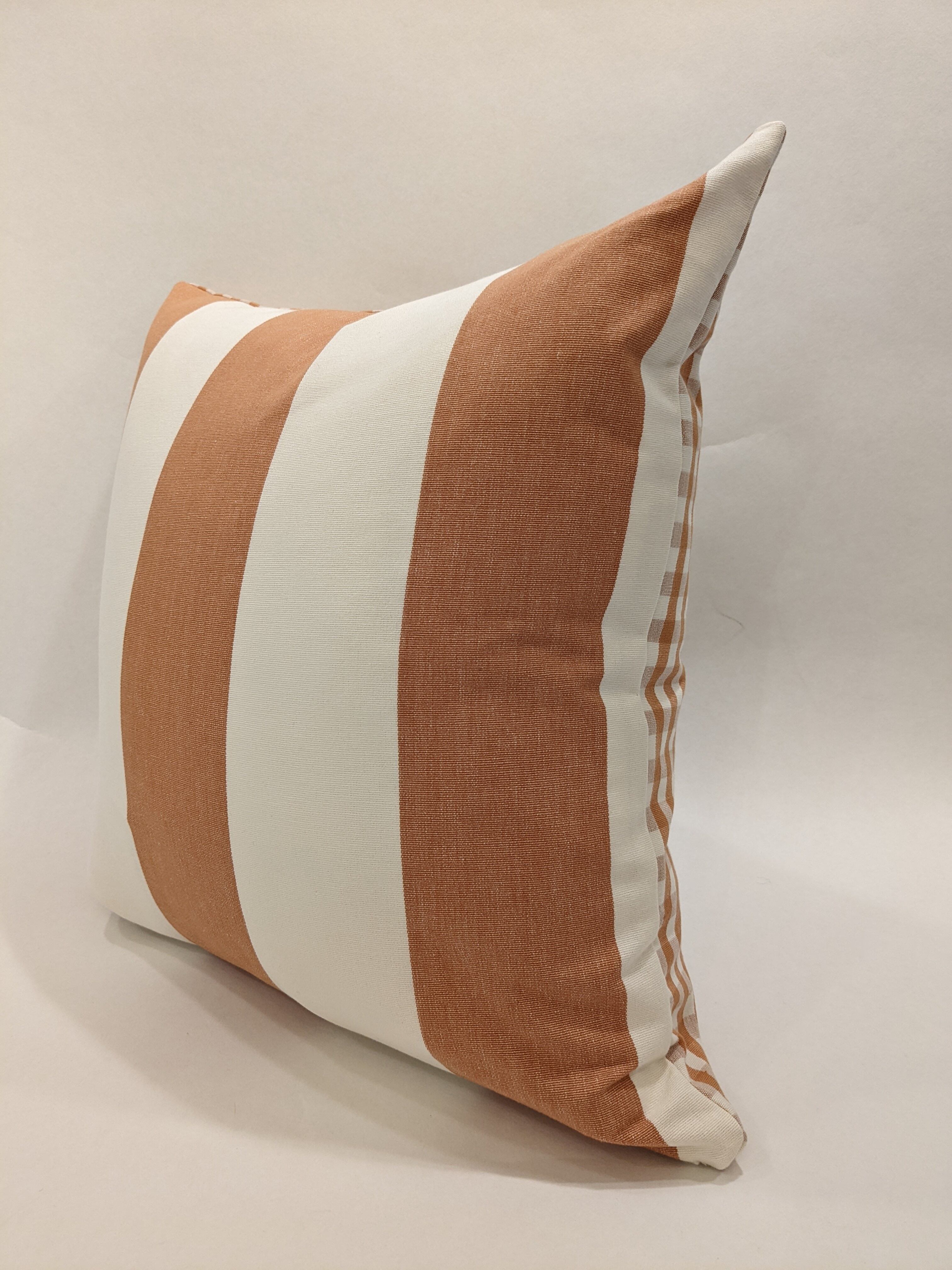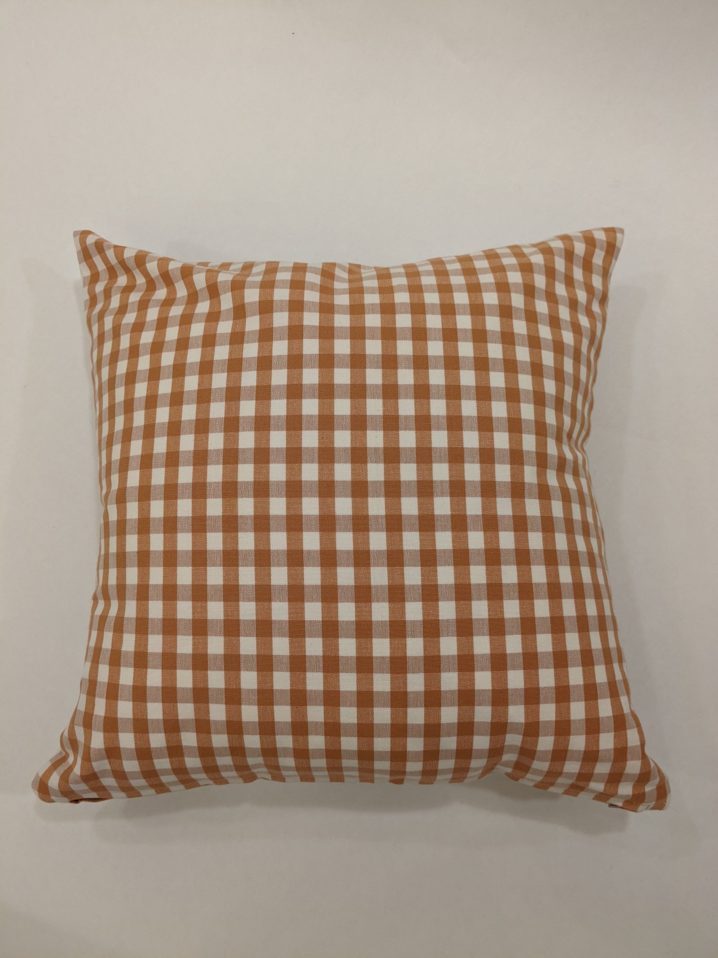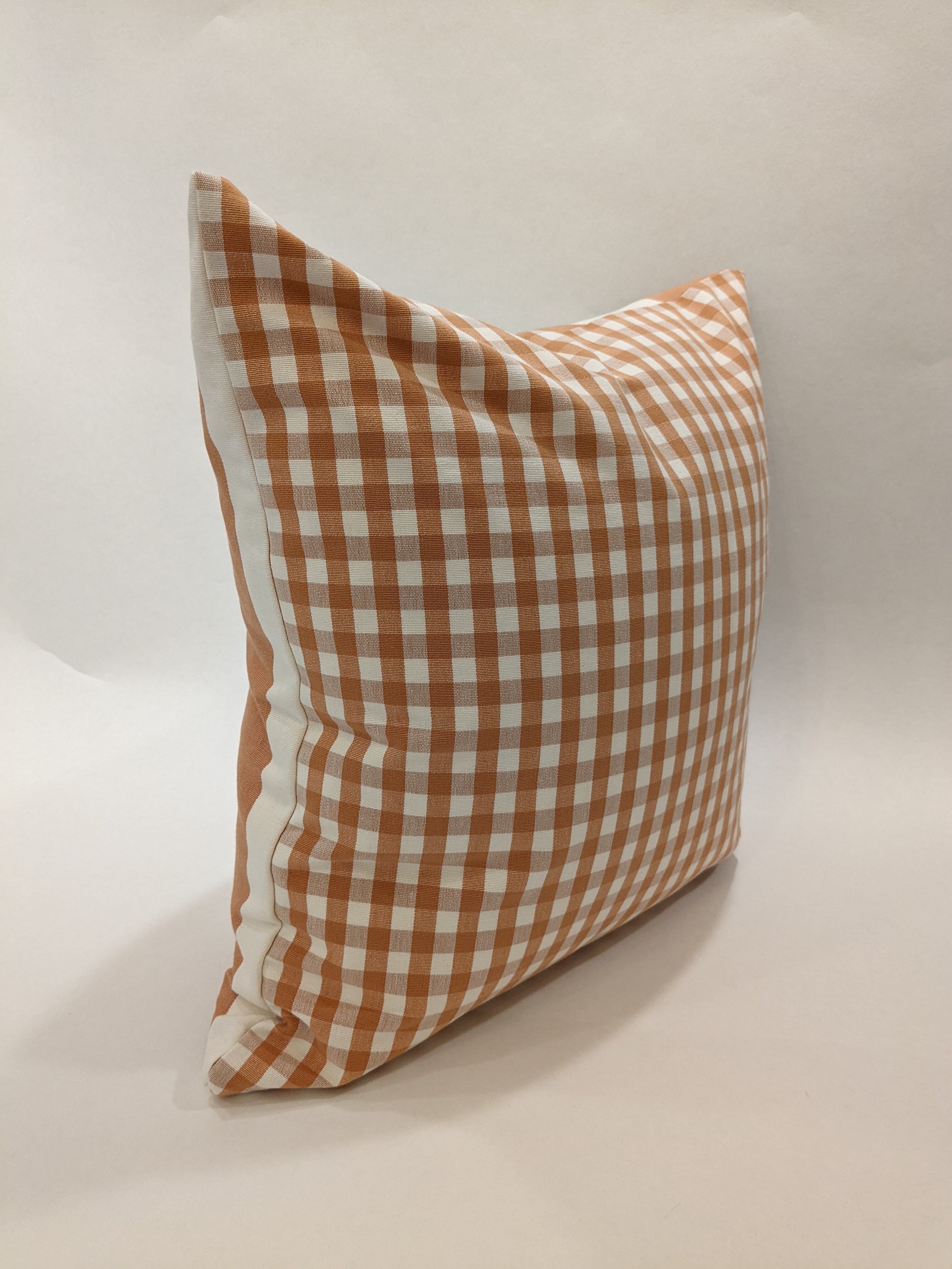 ストライプとギンガムチェックの柄を合わせたクッションカバー。シンプルな色合いとデザインのためインテリアとの馴染みも抜群です。
